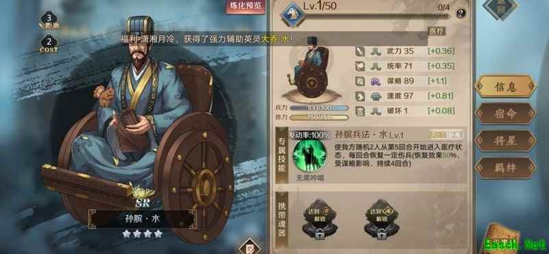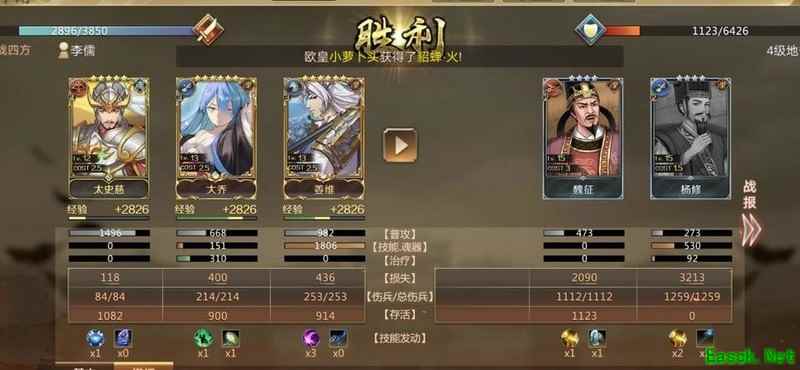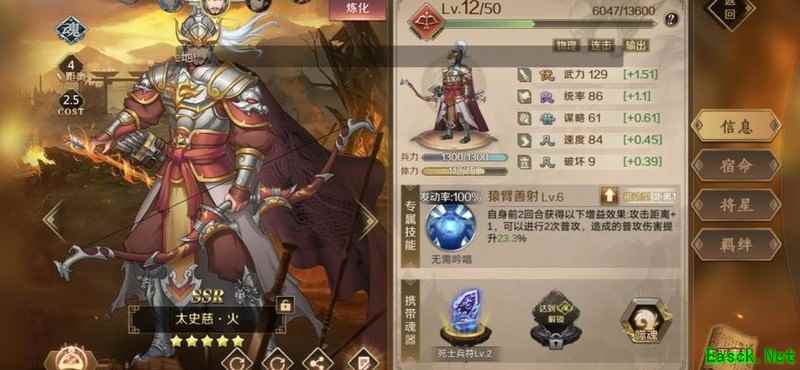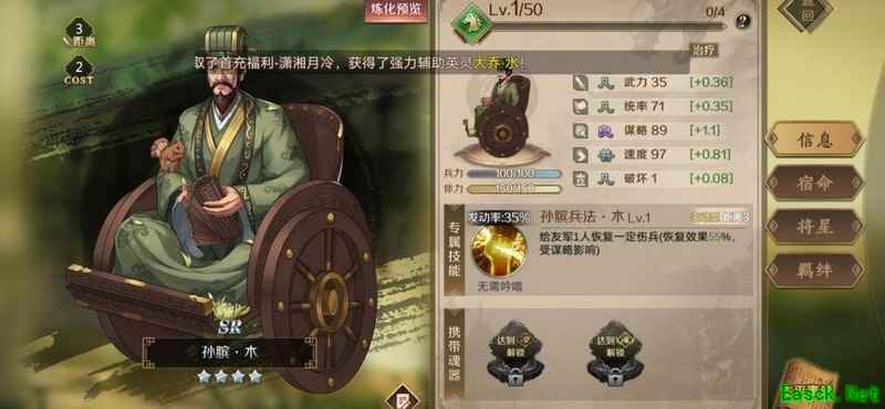 建议优先让大营中的辅助武将携带,不推荐用于打地,具体原因后文将详细说明。