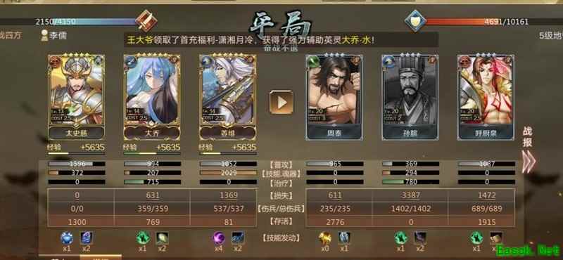 推荐武将:大乔、蔡文姬及谋略成长较高的其他武将。