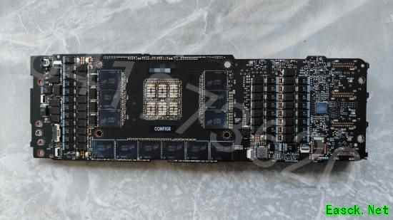 正反面各有12颗GDDR6X显存,共计24颗,组成384-bit 48GB,带宽超过了1TB/s。