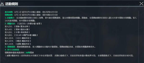 参与门槛:花费 1080 三角币,活动期间累计登录 14 天