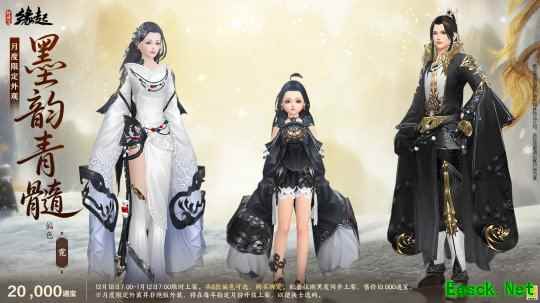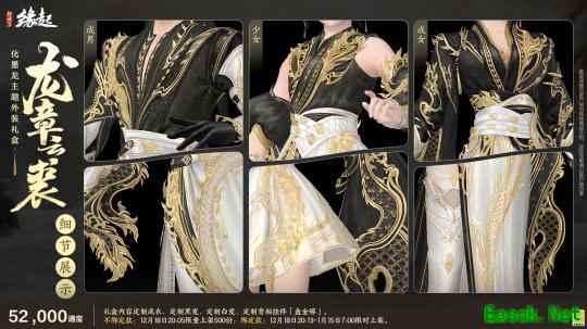 琼霰漫天舞,临妆映镜光。岁末将至,精彩不断,12月18日全新外观即将上架商城,为寒冬增添一份靓色!全新化墨龙主题外观礼盒「龙章云裘」以玄、素、灿金三色,绘新岁之象;外装礼盒「吉祥颂」以民族风搭配为侠士增添暖意;月度限定外观「墨韵青髓」2款全新偏色携6款经典偏色描绘丹青画魂;更有精美头饰及眼饰为侠士的搭配添彩。月度充消同步更新,三倍积分活动惊喜不断!