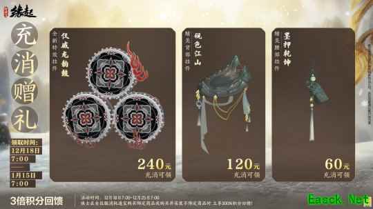 充消好礼12月18日更新,活动期间充消达到指定档位即可获得精巧挂件奖励,12月18日7:00至12月25日7:00期间享三倍积分!