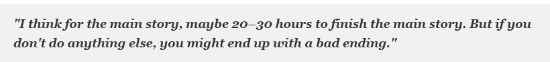 梁其伟在采访中表示:“如果只打主线剧情,大概需要20到30个小时。但如果你什么支线都不做,很可能会走向一个坏结局。”