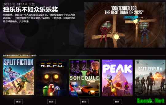 今日, Steam已正式启动2025年度Steam大奖的玩家投票环节,并同步揭晓了全部11个奖项的提名游戏名单,最终获奖者将由全球玩家社区投票决定。投票将持续到 Steam 冬季促销活动结束——获奖者将于 2026 年1月4日揭晓,快来选出你们心目中的年度最佳吧!