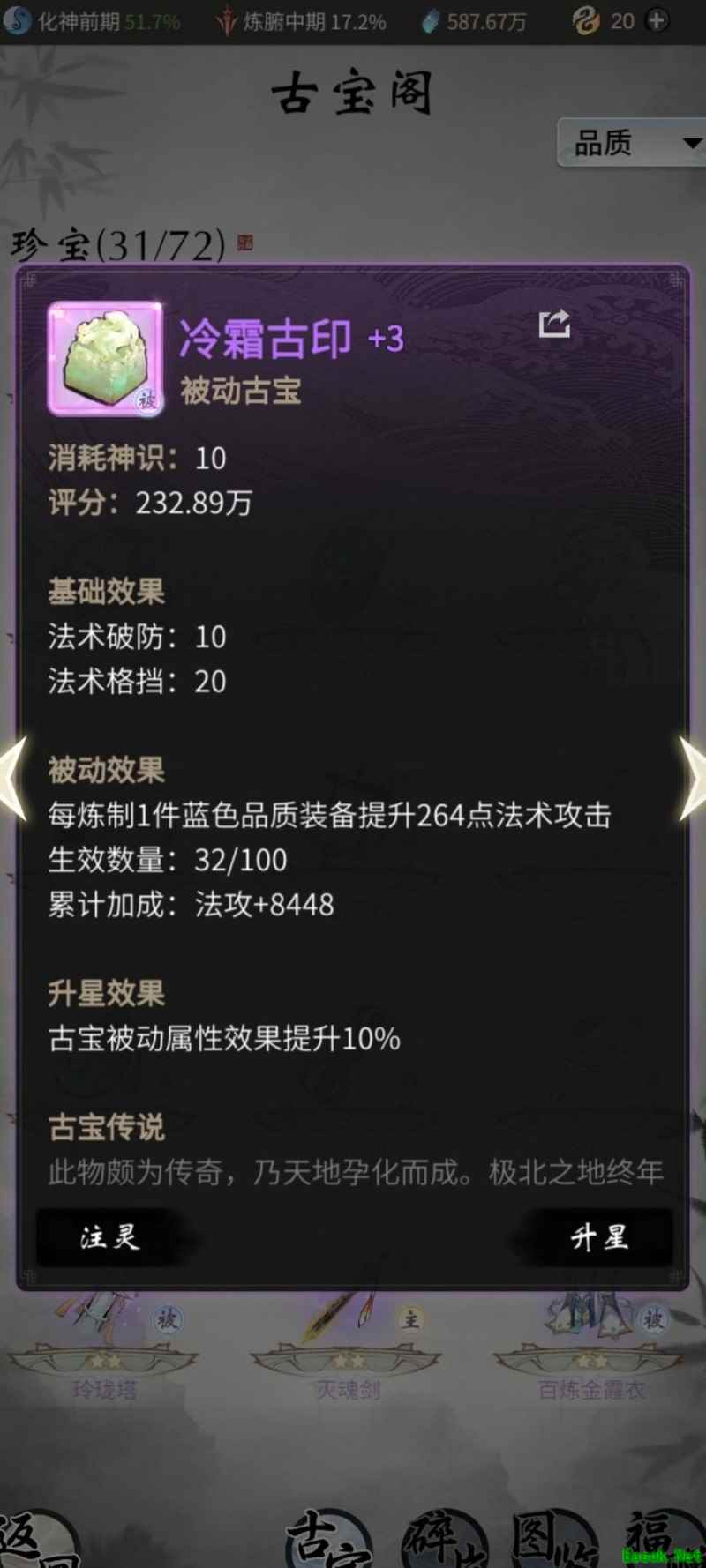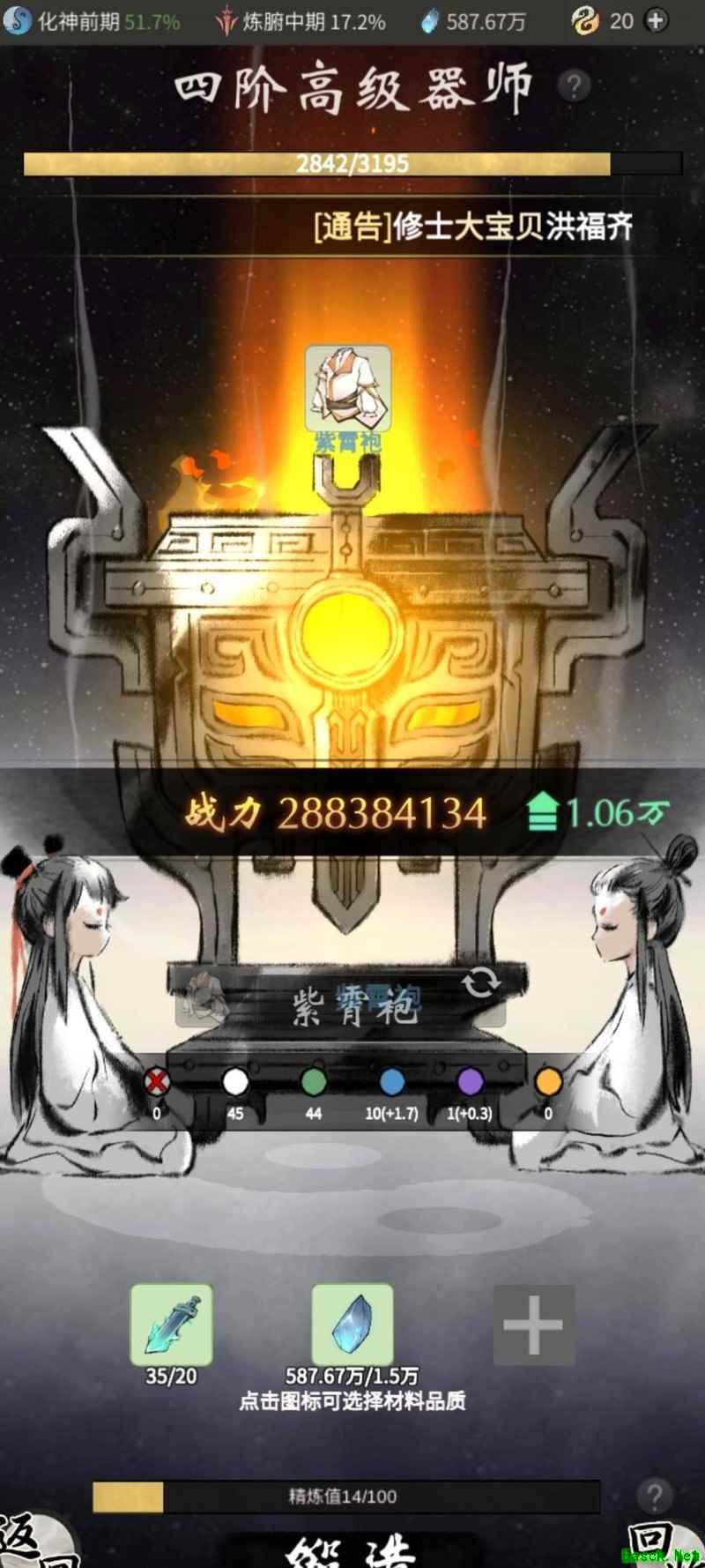 多件古宝炼制装备均可提升战力,无论练气还是化神所用,战力增幅相同。既然如此,为何不将低阶装备炼成成品出售,反而直接售卖原材料,显然前者更具收益优势。