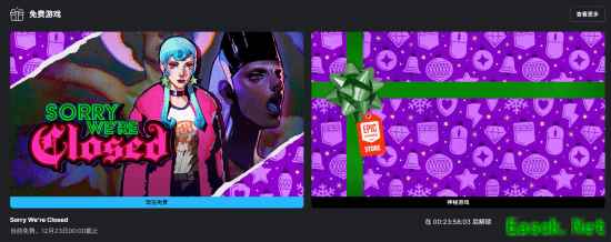 EPIC正式公布了神秘游戏连送第五款:怀旧单人生存恐怖游戏《Sorry We're Closed》!领取时间截至12月23日。下款神秘游戏将于12月23日公开。