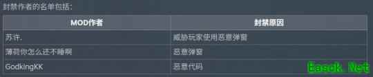 此外,官方还发布了有关违规MOD作者与相关MOD的封禁名单。具体名单如下: