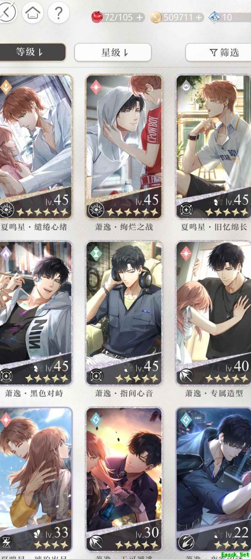 五张卡平均四十多级,因主角等级限制,目前仅通关第七章。
