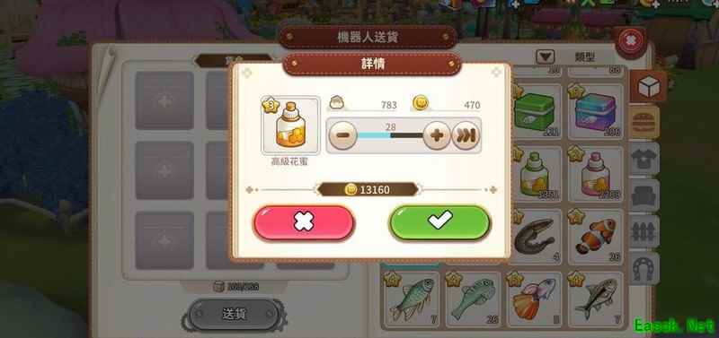 从图中可以看出,一星花蜜挂机获得毛利41090金币,花蜜成本为80乘以176,共计14080金币,消耗体力531点,经减免后实际消耗体力为435点,共减免96点体力。由此可测算出相关收益与消耗数据。