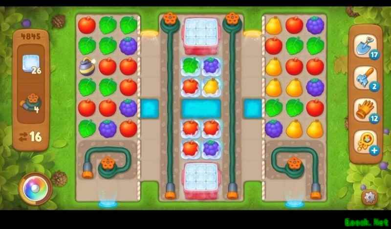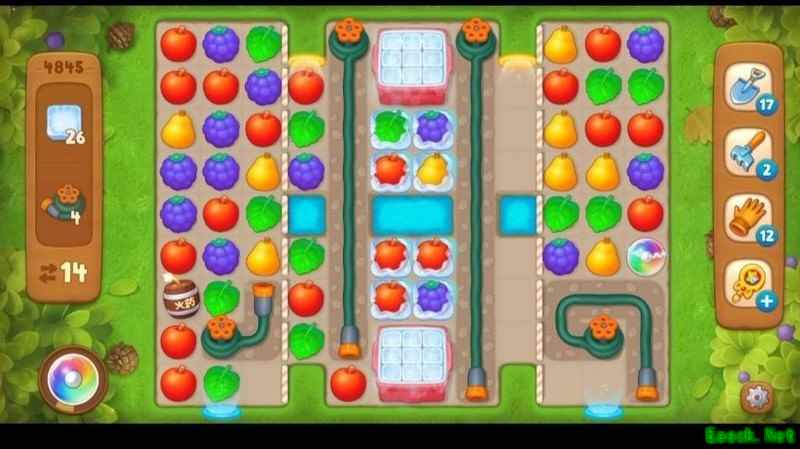 本关需收集26个冰块和4个水管,而获取冰块前必须先清除左右下方的水管障碍。