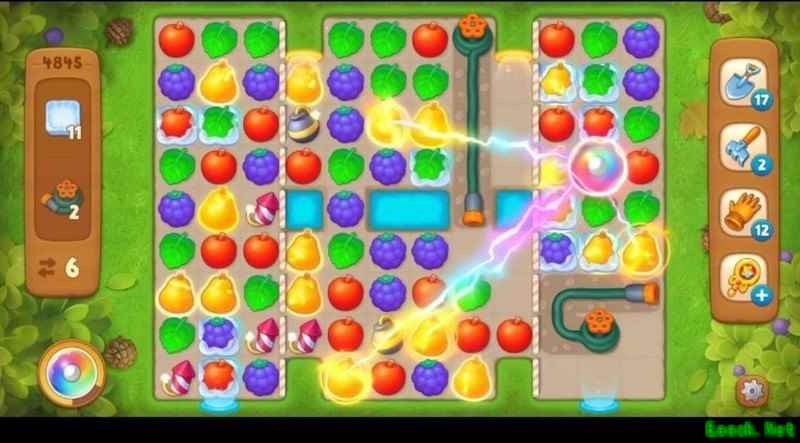 在水管旁边匹配相同图案可消除一段水管,也可使用炸弹炸毁。水管越长,所需匹配的元素越多,清除难度也随之增加。