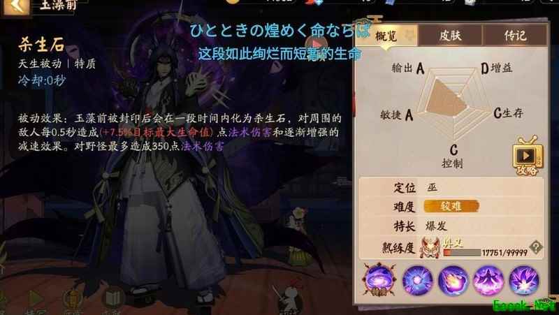 玉藻前被封印期间会化为杀生石,每0.5秒对周围敌人造成相当于目标最大生命值7.5%的法术伤害,并附加持续递增的减速效果。