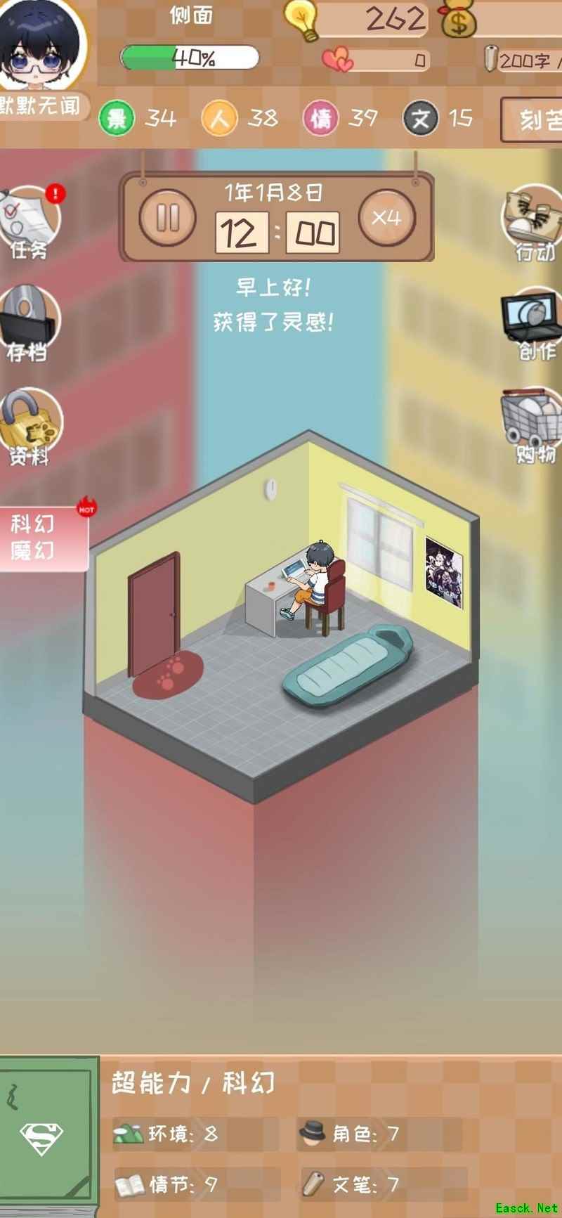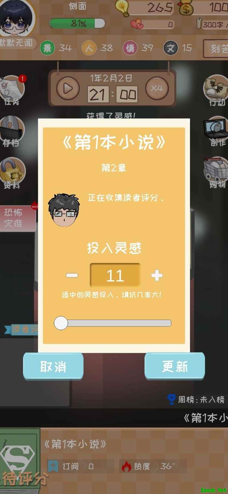 初始阶段四维属性评分未达满分,因此在推荐值基础上额外加3,原推荐11灵感则调整为使用14点灵感开启。优先领取所有可完成的任务奖励,并集中提升最后一项四维属性,确保四项均达到30以上。进入第二章时,系统建议灵感为12,实际直接采用15点灵感投入,后续章节依此类推。注意保持体力不低于30,否则进行写作将得不偿失。推进至第十章时,粉丝数量预计接近1000,此时调整策略为主动迎合市场偏好并积累沉淀,此举可提升获得千名粉丝的概率。粉丝数直接影响新书发布后的订阅增速、整体销量以及首日票房表现。鉴于当前版本前期订阅增长缓慢,建立扎实的粉丝基础尤为关键。首次获奖后应立即购置电脑床以提升效率。当灵感不足时,可通过观看两次获取灵感的广告来补充。