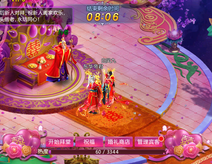 新人点击【开始拜堂】后开始拜堂,此时婚礼场景将屏蔽其他玩家。