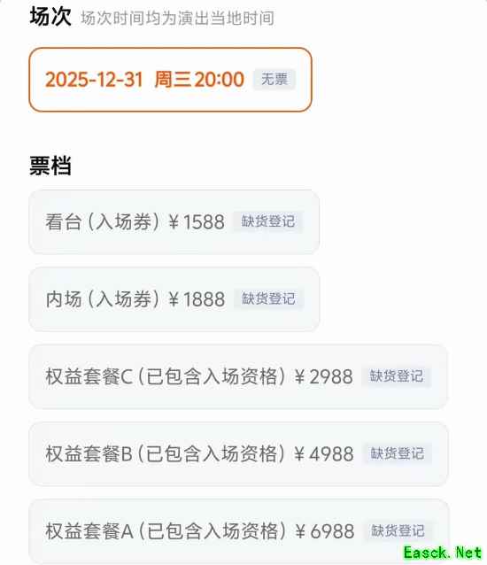 据懂球帝报道,Faker见面会将于12月31日20:00在成都举办,入场券一共分为1588、1888、2988、4988、6988五档。目前票务平台显示所有档位的票已经售罄。