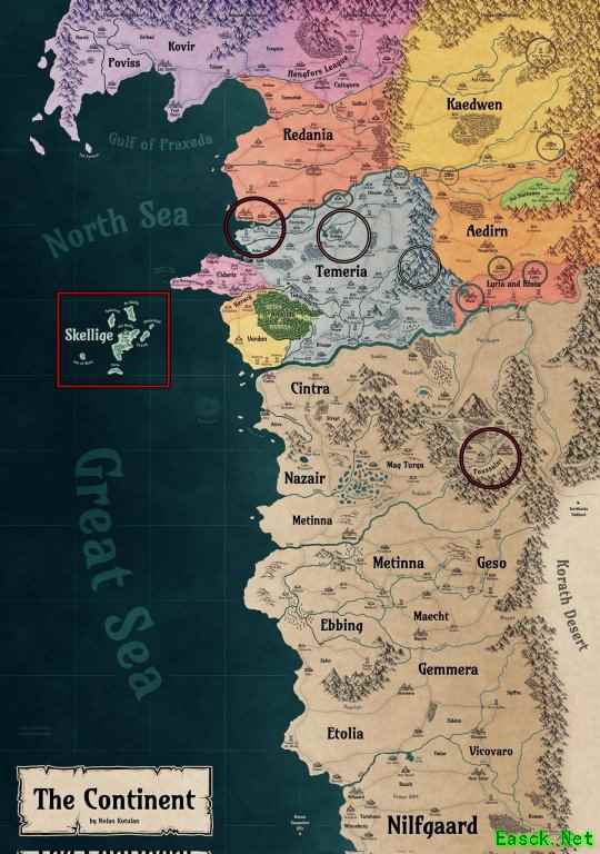史凯利格群岛(Skellige Isles): 小说中叶奈法和希里都曾在此停留,叶奈法与当地领主克拉奇·奎特关系密切。