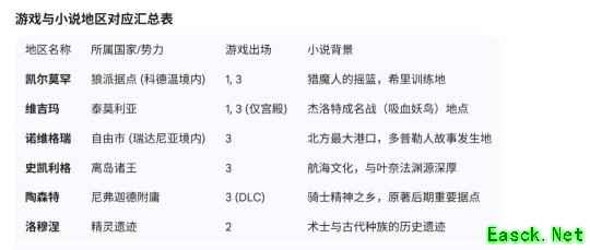 《巫师》三部曲游戏主要探索了小说中的以下核心地区: