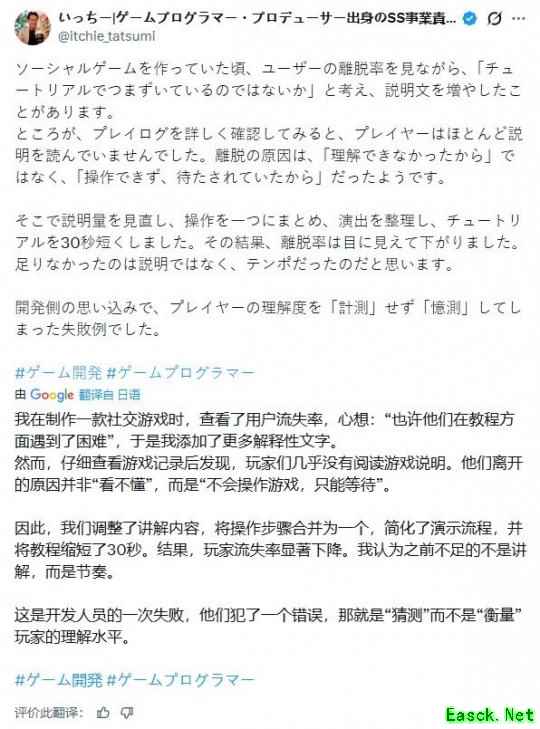 另一位游戏开发者回应道:“公司的管理人员倾向于添加更多的解释说明,但我不想这么做。我认为,与其在游戏开头提供一大堆教程,不如直接给玩家带来游戏的快感。游戏系统太复杂了,如果玩家已经迷上了游戏,他们会更喜欢去主动学习游戏玩法。”