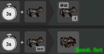 围住肉丝等待30秒,狗狗便会成长。成年狗每3秒移动一次,每次有2.5%概率减少寿命,总寿命上限为5。