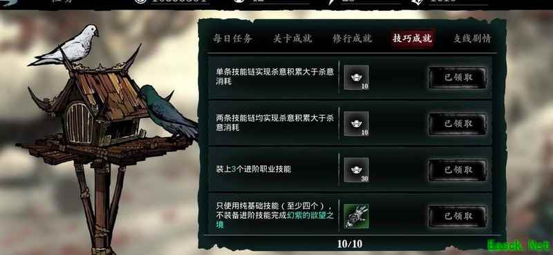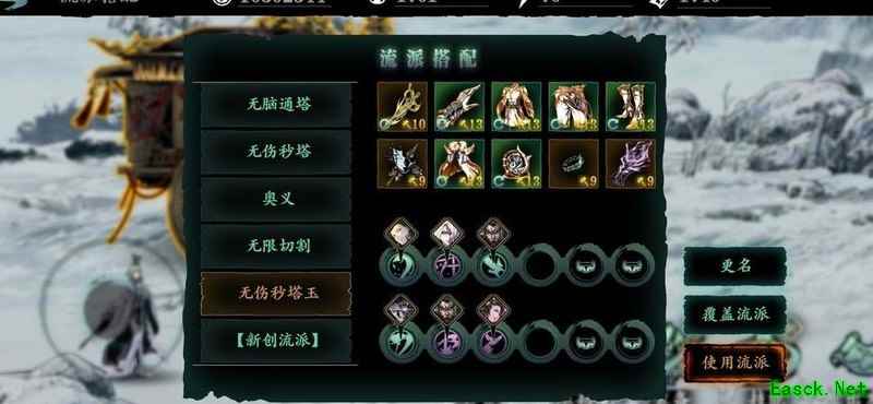 前往普通难度的武林红叶寺刷取一套金刚装备,强化至9级后穿戴。两条链子分别搭配提升防御与生命的内功心法,以及冷却时间较短的技能。再装配两个技能均满的暗夜飘香绝技,凭借此配置顺利通关塔顶。