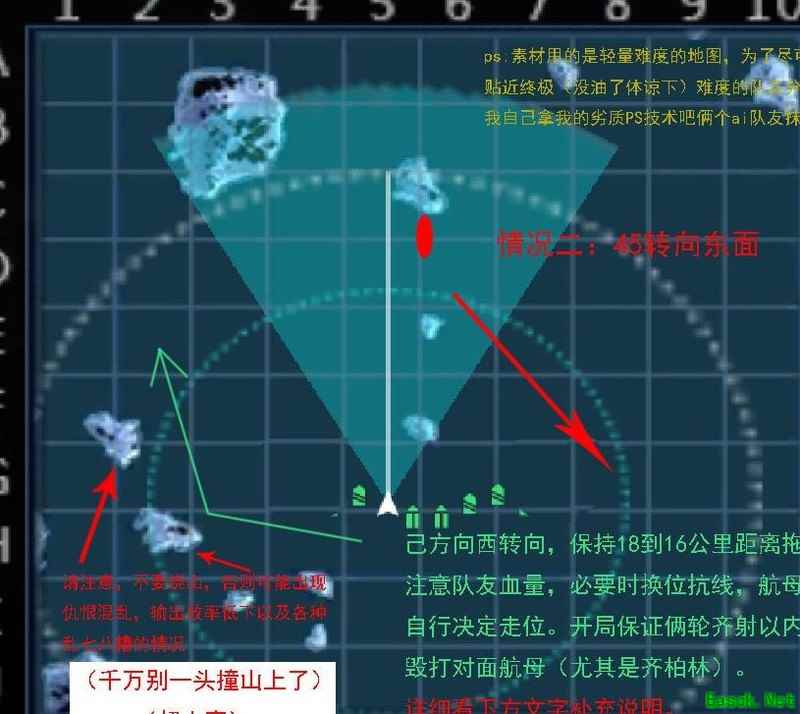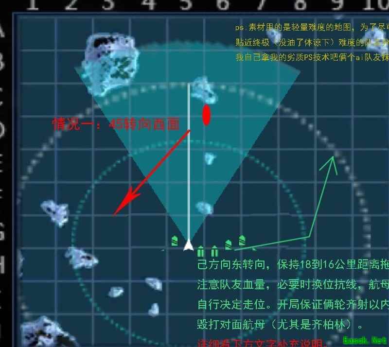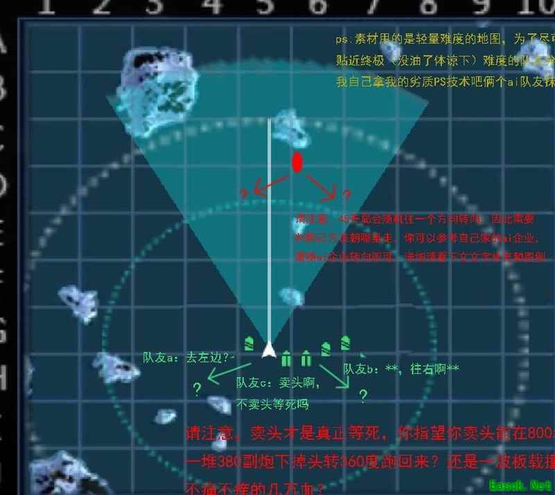 开局时45的转向虽为随机,但一旦确定便不会改变,需仔细观察其动向,可参照己方AI舰船的转向作为判断依据。若敌方暂时未能发现目标(例如在四岛风的情况下),她们通常会前往靠近我方出生点左侧或右侧的集结区域,并在此抱团绕圈,形成密集阵型,此时航母投弹需更精准地调整落点。注意岛风投雷时的提前量预判,避免误判轨迹,有时她们可能中途撞山,导致多艘舰船挤在一起反复摩擦前行。