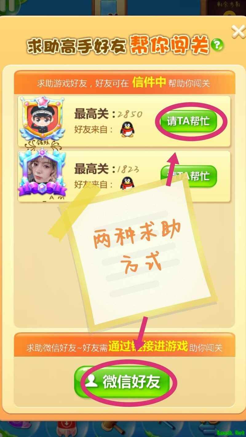 通过微信好友代打链接,分享后已通关者可选择为你代打该关卡。