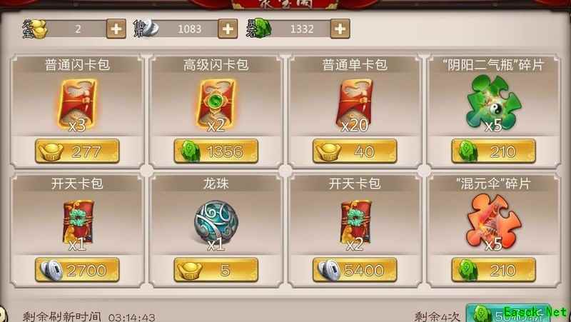 保持仙币余额5400,优先购买聚宝阁中2700和5400的卡包,超出部分则用于购买商店中3000仙币的开天包。