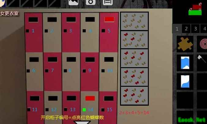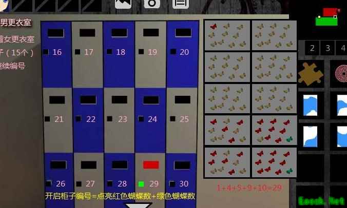 为柜子编号后发现,开启的柜子数量等于点亮的红蝴蝶数量。