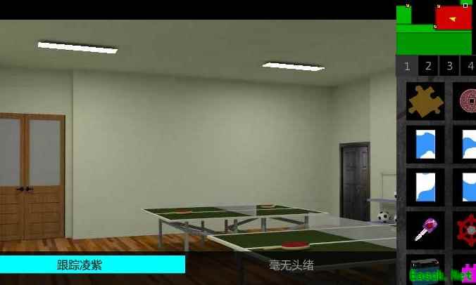 返回一楼体育器材室,走近台球桌,拿走桌面上的瓷砖。