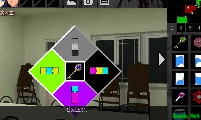 返回二楼东侧走廊,上楼至三楼东侧走廊,用木之钥打开右侧房门,进入三楼美术室。