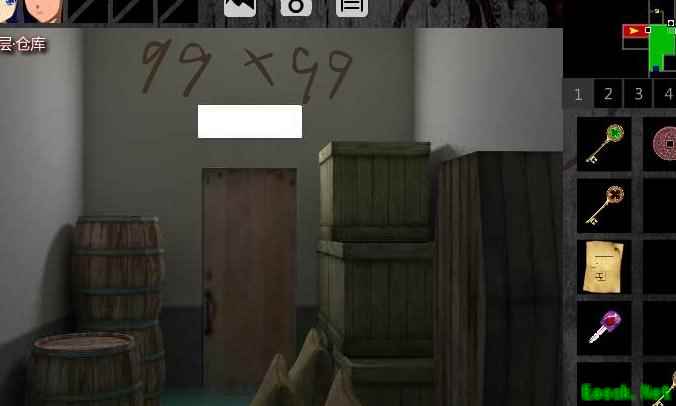 使用土之钥打开-1层仓库门,进入后取得线索:99×99等于9801。