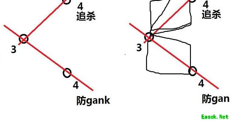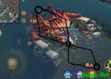 A是追击路线,若想继续压制敌方中单,可在追击至4时释放黑棋,触发范围爆炸效果。