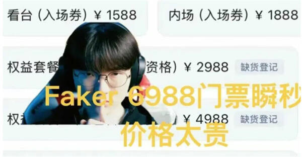 LOL 圈彻底沸腾!作为英雄联盟史上夺冠最多的 “大魔王”,Faker 在越南活动结束后,空降 2025 夺冠之地成都举办粉丝见面会,本是粉丝狂欢的盛宴,却因票价引发全网热议 —— 最高档 6988 元(近 7000 元)可解锁合影 + 水友赛资格,入门级看台票也达 1588 元,被网友吐槽 “价格离谱”,但开票仅 1 分钟所有档位票券全部售罄,二手票更是炒到天价,而此前 Faker 越南见面会最高票价仅 2000 元,这一差价让不少网友质疑 “对中国粉丝不公平”。