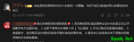 此前,《燕云十六声》新推出的“飞白成诗”外观因采用性感的设计元素,引发部分玩家群体的广泛争议。即便在修改后,不少网友认为该造型与游戏整体风格不符,甚至直言更像“情趣内衣”。目前,几乎官博近期的每一条最新动态下方,都有大量网友声讨游戏,希望官方公开道歉,甚至有玩家呼吁“全体停氪”。