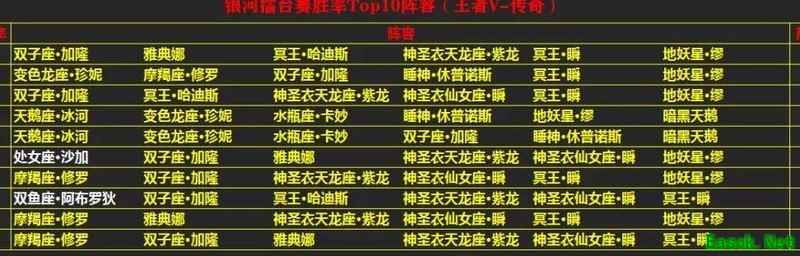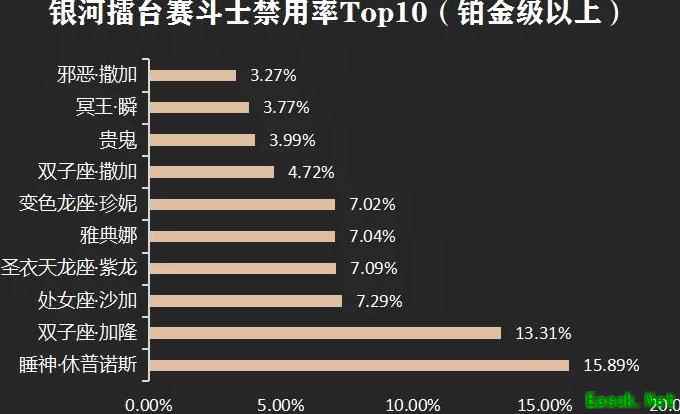 睡神依然稳居禁用榜首位,无人能撼动其地位,双子加隆与处女座沙加紧随其后位列二、三。本周整体禁用排名较上周波动明显,主要推手正是双子加隆。除睡神与雅典娜外,其余上榜角色几乎均与其体系相关,可见双子加隆已显著影响并重塑了当前银河对战的整体格局。