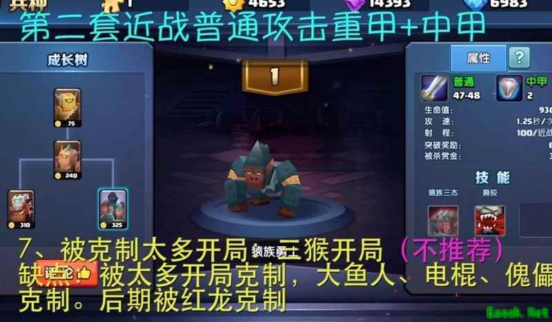 三猴开局不推荐,因前期易被多种阵容压制,如大鱼人、电棍、傀儡等,甚至普通开局搭配散装肉盾也能有效克制。后期表现更差,尤其惧怕大红龙,整体缺乏强度与应变能力,难以应对多样战术环境。