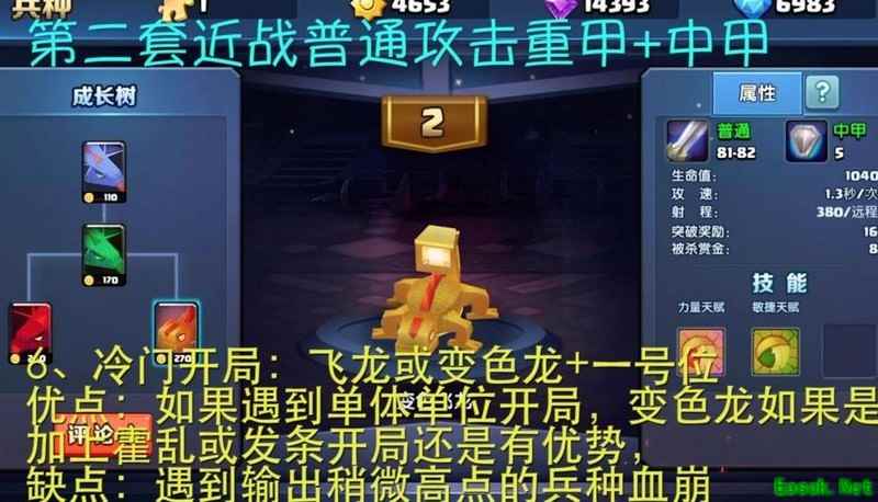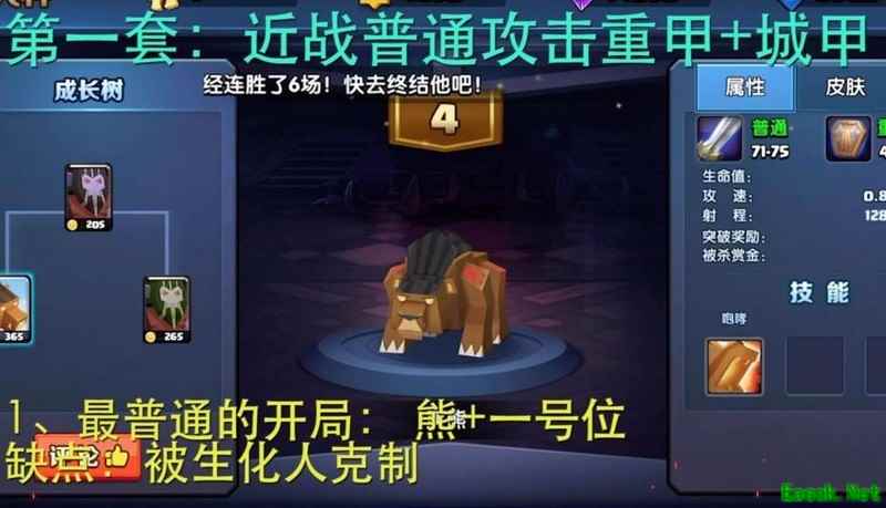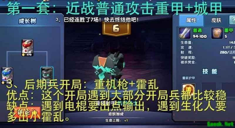 这四种是近战普通攻击型重甲与城甲单位最常见的开局方式,包含初始兵种。虽有如牛头人等另类开局,但因极易阵亡不作推荐。各类开局各有优劣,存在相互克制,关键在于抢得首杀并为后续大英雄登场创造条件。