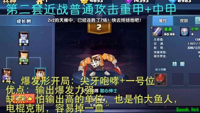 4、爆发型开局:尖牙咆哮搭配一号位优势明显。该组合与飞机开局类似,若尖牙咆哮成功存活,衔接第二波兵线后可打出极高输出。其自身血量较厚,在敌方输出不高的情况下,容易积攒兵力形成压制,逐步推进并建立优势,具备极强的前期作战能力。