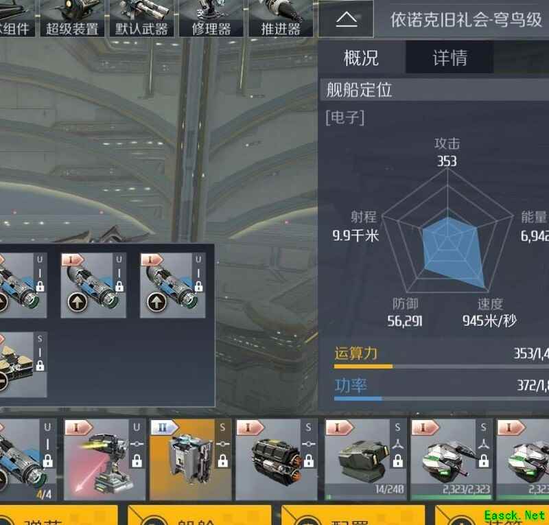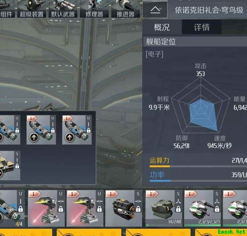 装备槽配置:火控干扰装置、微型离子推进器及小型应急能量注入模块。