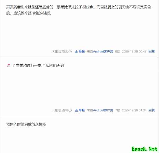 网友指出虽然脸型轮廓还在,但眼睛和神态的涂装显得非常业余,完全没有展现出主角在预告片中的清冷气质,甚至被调侃为“邪神”。