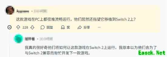 这一消息引发了玩家们的热烈讨论,Reddit论坛上有不少网友都吐槽:“这游戏在PC上运行得都很勉强,他们居然还指望它移植到Switch 2上?”