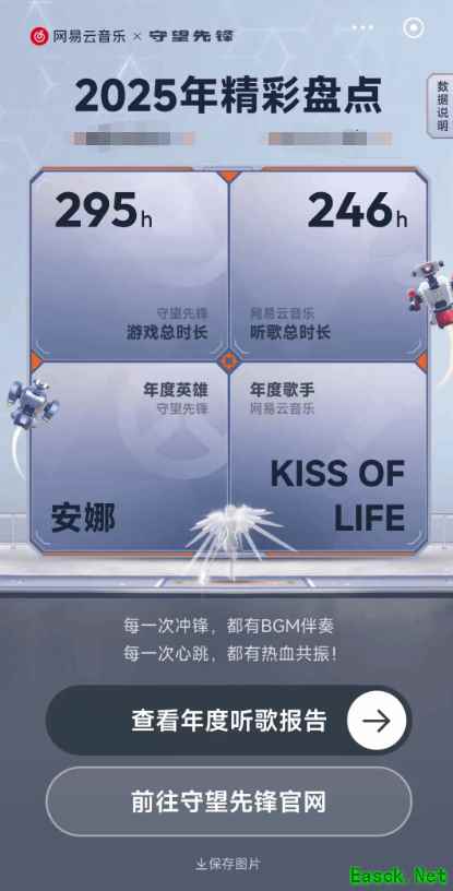 用户可登录网易云音乐 APP,搜索 “守望先锋” 即可解锁这份专属联合报告。