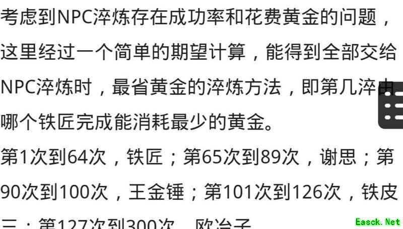 若仅在最后50次机会中寻找欧冶子进行淬炼,要将一把神兵完全淬满,所需黄金的期望总值为331621。该数值由多个阶段的投入累加而成,包括各环节的平均消耗,综合计算得出完成整个淬炼过程的总体成本,反映出后期集中淬炼所需的巨额资源投入。