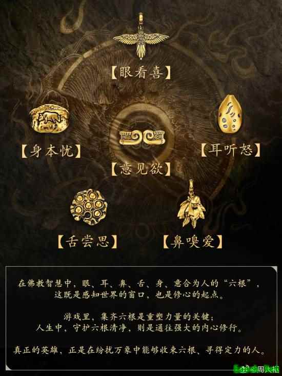 在《黑神话:悟空》的世界里,孙悟空的生命印记化作六枚“根器”:身本忧、耳听怒、眼看喜、舌尝思、鼻嗅爱、意见欲。它们既是散落的残念,亦是重聚的线索,在这场宿命中,见证一场英雄的觉醒与重塑。