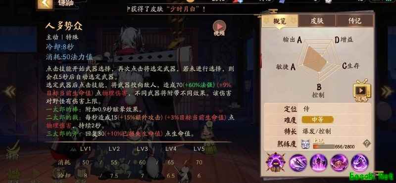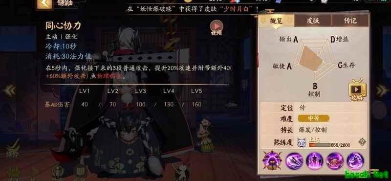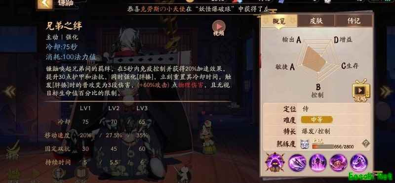 特质充分展现了镰鼬欺软怕硬的本性,当自身生命值百分比高于对手时,普通攻击将强化为两次70%伤害的连击,持续三次普攻。该效果下的平a仍可触发暴击,是输出的关键所在。
