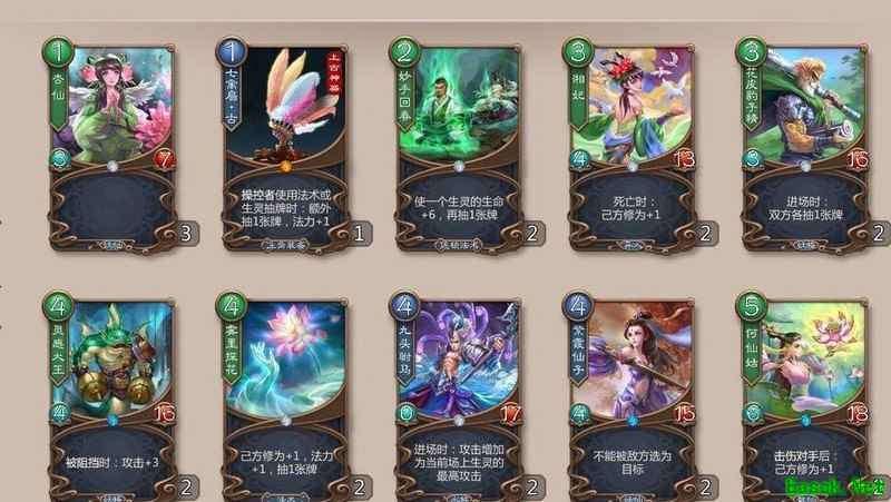 尽量获取过牌类技能,如青龙吐雾、同气连枝、摄气决,生灵慎选,高攻单位一到两只即可,过多易卡手。