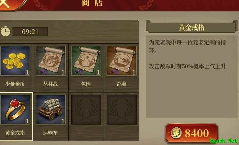 黄金戒指:售价8400金币,攻击时50%概率提升士气