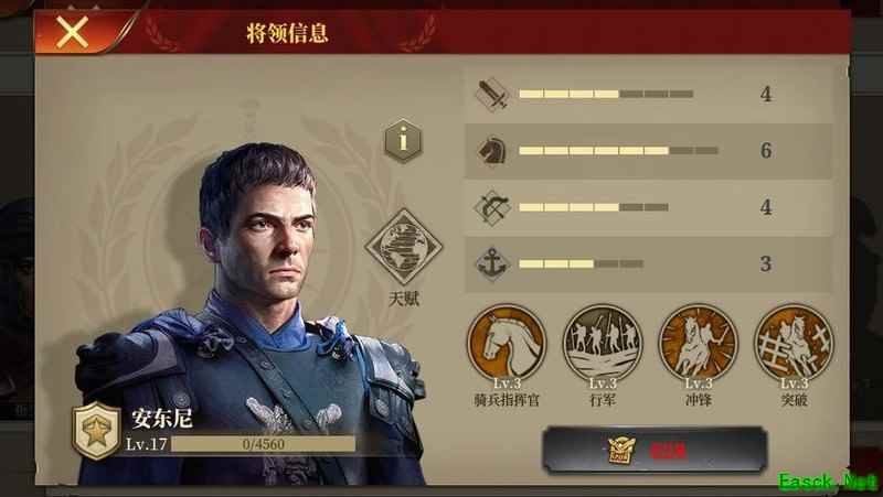 仅需98勋章,天赋可永久提升士气,如同佩戴黄金桂冠,是出色的骑兵统帅。