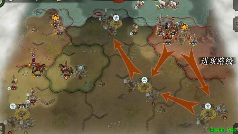 第四关三星难度较高,需注重进攻次序及经济运营基础。新人玩家需知,收入按人口分为和平、防御、侵略、疯狂四档,回合收益逐级下降。科技建议顺序:先点近卫军团,接着灌溉、商路,随后任意科技,再解锁二级科技中的总督(可激活急行军策略)。进攻路线推荐:优先右下城市,再攻中心城,最后拿下沿海城,合理规划节奏更易通关。
