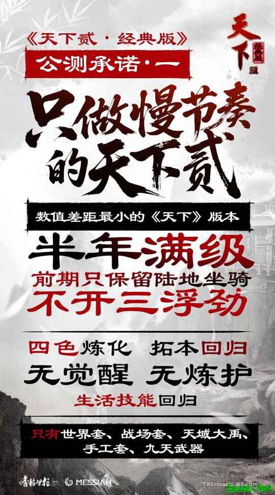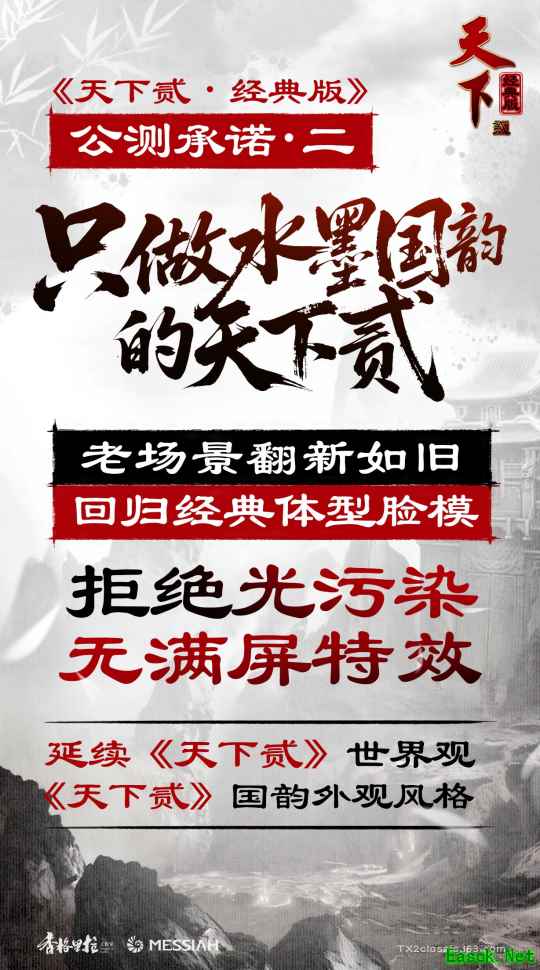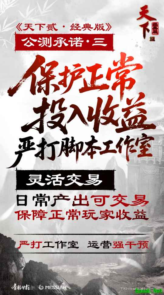 十天后的1月9日,中午12点,《天下贰·经典版》将正式开服,为了让广大少侠能更欣喜地相聚于这片经典大荒,开发组也作出了三大承诺,邀请各位少侠共同监督与见证。